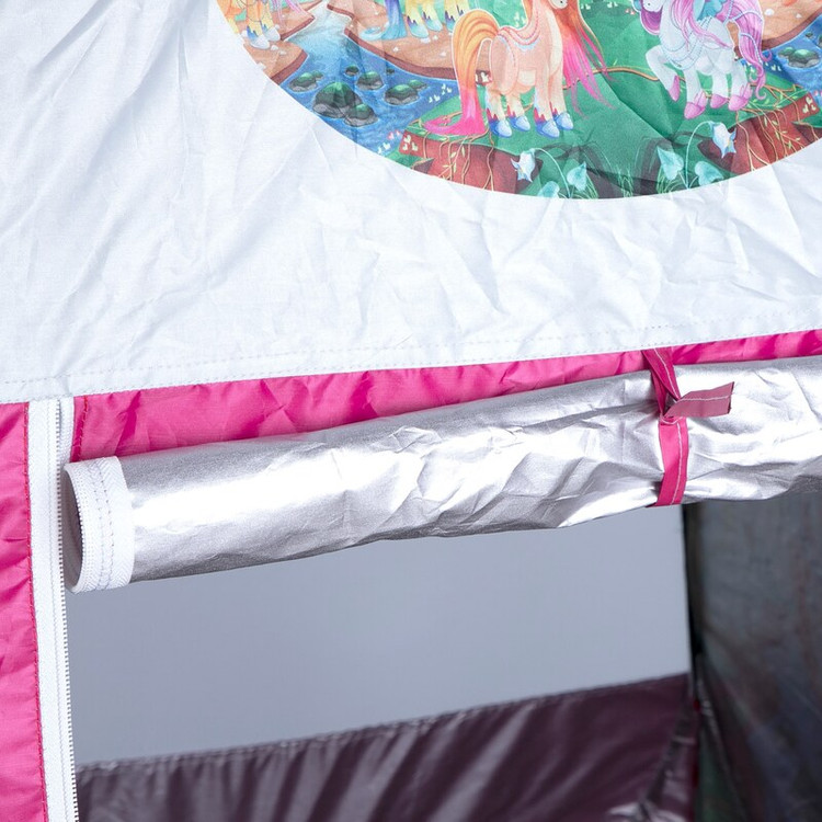 داشتن یک چادر بازی برای کودکان القاء کننده حس استقلال است و به آنها این امکان را می دهد که ساعتها با دوستان و یا اسباب بازی های خود در گوشه ای بدون ایجاد مزاحمت برای سایر اعضای خانواده سرگرم شوند چادر بازی کودک طرح پونی ( پونی ) محصولی است تولید شده با پارچه با کیفیت پشت نقره ، فنرهای قوی ، ستون های فایبرگلاس ، کف ضخیم و تا حدودی ضد آب که با افتخار توسط یک تولیدی ایرانی با بهترین متریال عرضه می گردد. طراحی و چاپ دیجیتال و منحصر به فرد این محصول که آن را نسبت به محصولات مشابه در بازار متمایز می کند. چادر بچه طرح پونی علاوه بر ظاهری کودک پسند وسیله ای کارآمد برای جمع آوری اسباب بازی ها توسط والدین است. این محصول با وزن سبک ، حمل آسان و کاور دایره ای شکل 40 سانتی متری به راحتی باز و بسته می شود و با ارتفاع 110 سانتی متر و طول و عرض 95 در 95 سانتی متر در گوشه ای از منزل ، مهد کودک، در مسافرت ها، کنار ساحل و ... قابل استفاد است. چادر بچه طرح کیتی با ظاهری زیبا و چشم نواز دارای پنجره توری تهویه ای مناسب برای فرزند دلبندتان بهمراه دارد و زیپ 150 سانتی متری با کیفیت با سرزیپ پلاستیکی رنگی و بی خطر ، این امکان را به کودک خواهد داد تا درب منزل شخصی خود را براحتی ببندد و به والدین کمک کند تا لوازم و اسباب بازی های بچه ها را در آن جمع آوری کنند. این محصول قبل از ارسال از لحاظ پارگی ، چاپ صحیح ، سلامت فنرها و زیپ ها مجدداً کنترل خواهند شد