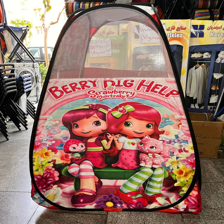 چادر بازی کودک طرح دختر توت فرنگی مدل فنری با درب زیپی و توری دوزی شده کد2