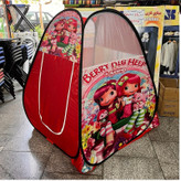 چادر بازی کودک طرح دختر توت فرنگی رنگ قرمز با درب زیپی و توری کادو سیسمونی کاور کد6